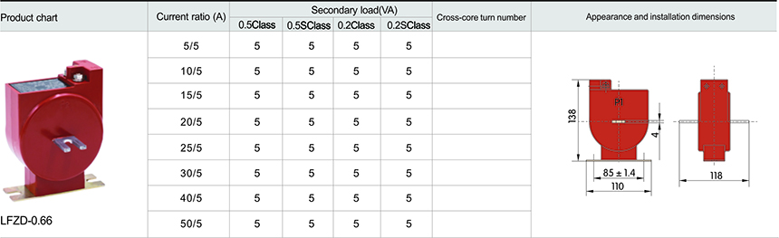 LFZD-0.66 or LFZ□D-0.66 Type current transformer is mainly used for indoor, for rated voltage up to and including 0.66kV, rated frequency 50Hz AC circuit as the Current measurement or electrical energy measurement, The product is an unsaturated resin casting method, and the fixed installation method is adopted.