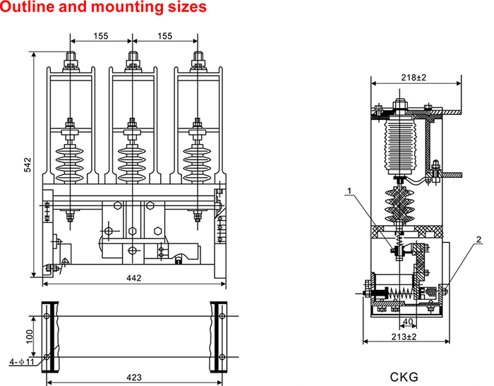CKG type AC high voltage vacuum contactor isoperated in the indoor power system of AC 50/60 Hz, rated working voltage7.2KV, or 12KV, rated current 200A, 400, 630A, used to remotely and frequently control AC motor, transformer, capacitive oads and etc equipment. This contactor can reach up to grade 6 at maxi, if required, mechanical interlock can be assembled to prevent positive and negative contactors being closed together.