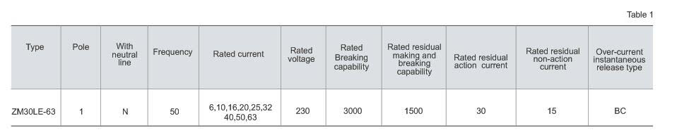 ZM30LE-63 series leakage circuit breaker is suitable for the circuit of AC 50Hz, rated working voltage 230V and rated current 40A and below, to make indirect contact protection to the human being and protect the circuit against over current in buildings or other similar locations as well, also to prevent fire accident caused by continuous ground fault current due to the damage of over-current protection equipment. In addition, the leakage circuit breaker with over voltage protection can prevent the over voltage caused by fault of power grid.This series of products is more and more used for stand-by protection against ground fault and electric shocks by direct contact and indirect contact in the low voltage distribution system. The products are in conformity with such standards as GB 16917 and IEC61009.