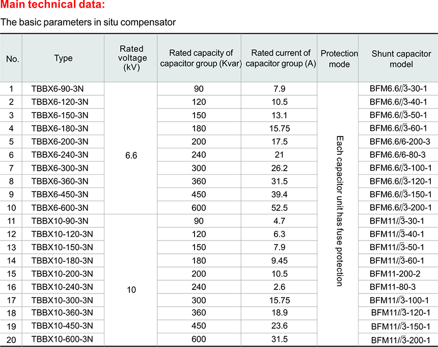 TBBX type high voltage reactive local compensating device (hereinafter call compensating device) is of indoor use, for rated voltage 6-10KV, 50Hz, system to locally compensate reactive power for 6-10KV 3-P AC motor and to lessen the electric loss, improve electric quality and motor starting performance, the compensating device will be switched on/off along with the motor on/off. The effect is better than the central compensation.