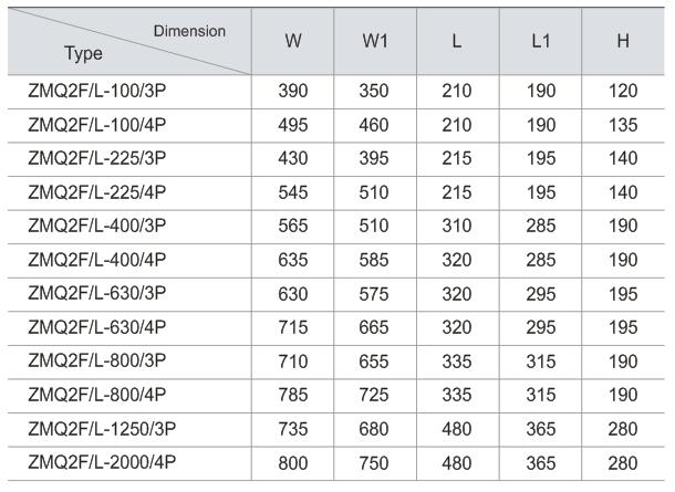 ZMQ2 / F Series intelligent self-protection dual power switch (hereinafter referred to as switch) for AC 50Hz, rated working voltage 400V, rated current 16A ~ 2000A. Mutual conversion used in emergency power supply system of two common power supply (N) and standby power (R) between (can also be set to manual) and as a control, signaling, interlocking and other uses of the switching control circuit, the present products with some models designed communication port, which enables remote control, allowing users to achieve unattended substation. Suitable for residential areas, military facilities, hospitals, shopping malls, airports and other places.