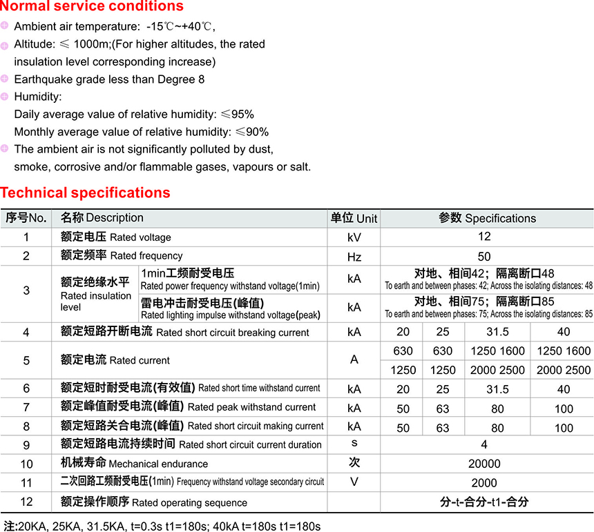 Altitude: ≤ 1000m;(For higher altitudes, the rated insulation level corresponding increase)