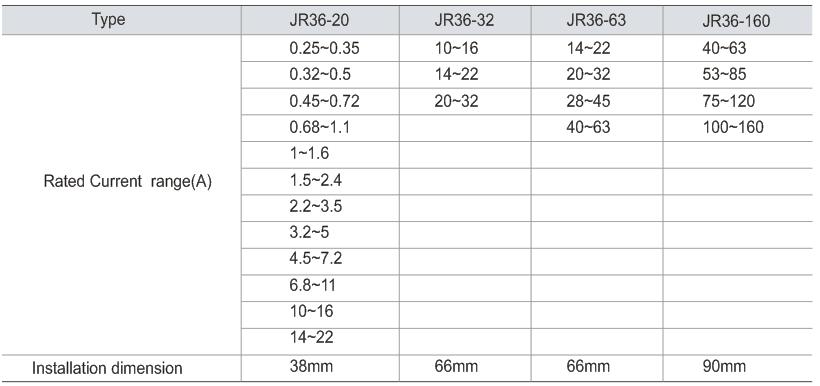 JR36 series thermal relay is suitable for AC 50Hz or60Hz, main circuit rated voltage up to 660V, currentup to 160A, used as protecting AC three-phase motoragainst overload and has the functions of breakingphase protection, temperature compe. It can automaticallyand manually reset, too.