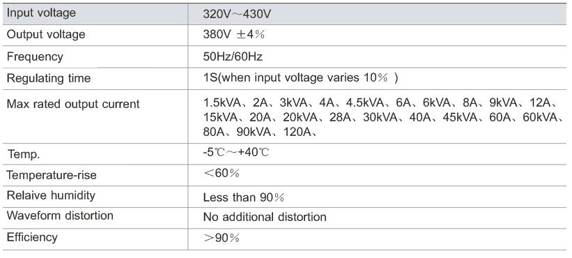 This product is constructed by connecting the three pieces of high accuracy full-automaatic AC voltage stabilizers with Y connection method, has the advantage of: