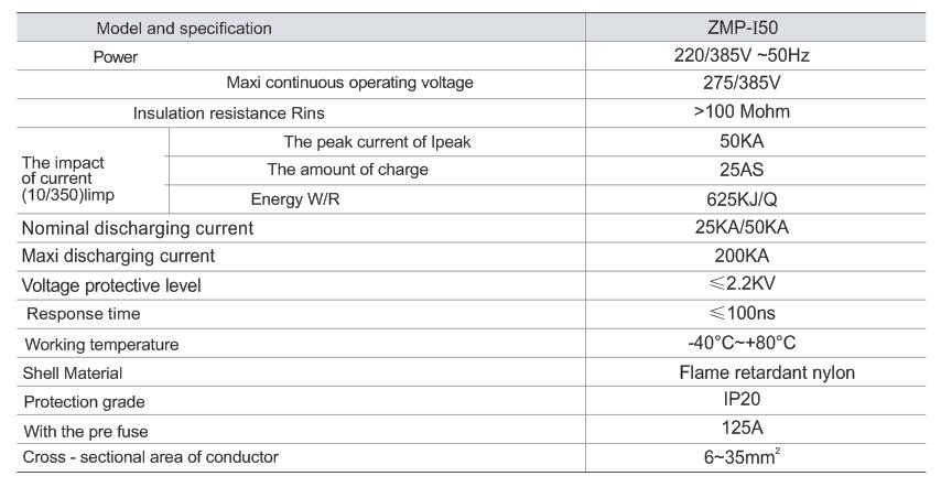 ZMP-I50 series of pressure limiting type surge protective device(a Lighting arrester, 10/35μs waveform) 3 according to IEC and GB standards.
