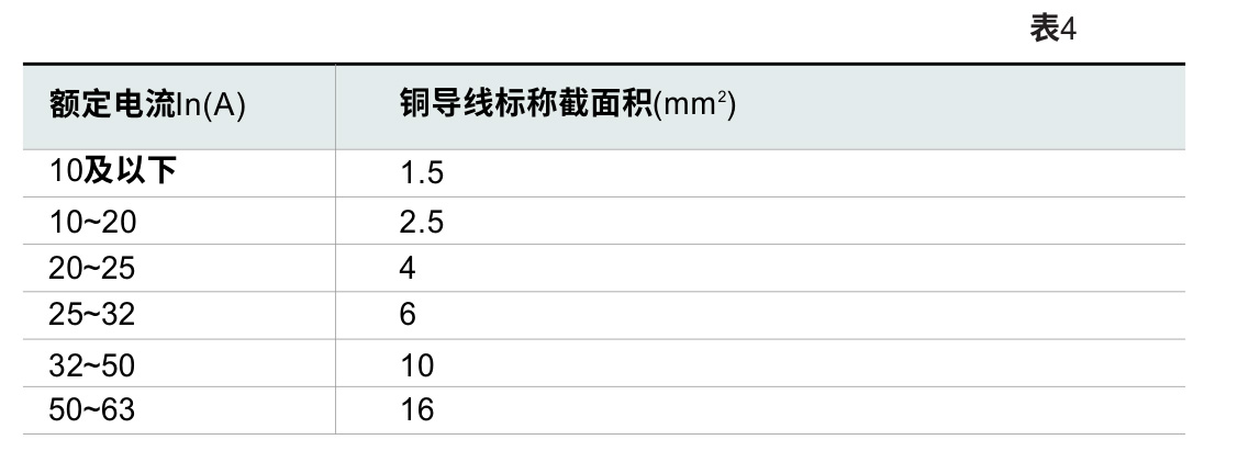 安裝銅導(dǎo)線選型見(jiàn)表4