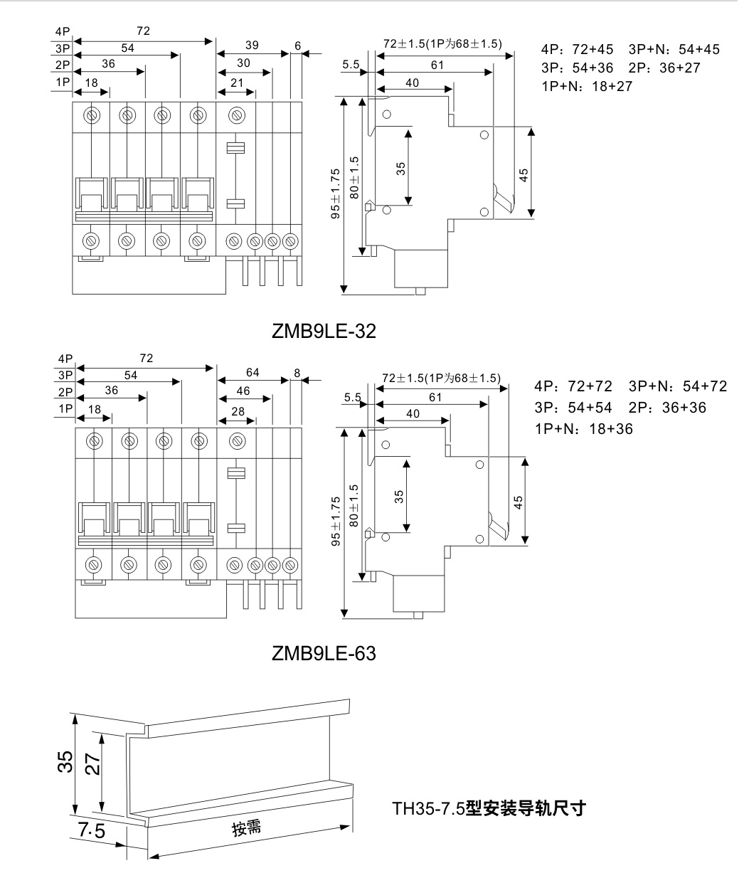 安裝方式:采用TH35-7.5型鋼安裝軌安裝。