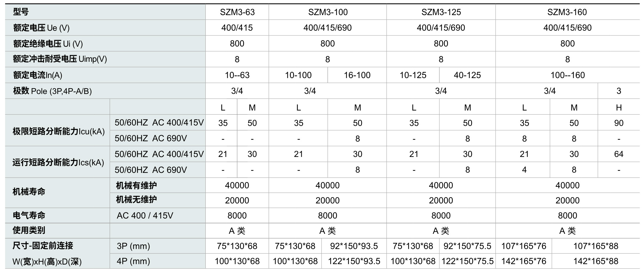 SZM3系列塑料外殼式斷路器(以下簡(jiǎn)稱(chēng)斷路器) 是本公司綜合采用國(guó)際先進(jìn)設(shè)計(jì)、開(kāi)發(fā)的新型斷路器之一。