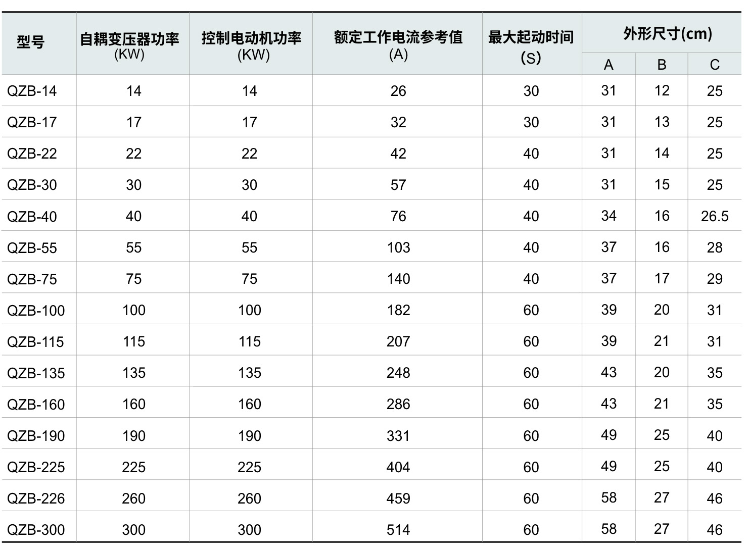 本起動(dòng)自耦變壓器系用于三相交流50HZ/380V,功率14-300kW鼠籠型電動(dòng)機(jī)自耦降壓起動(dòng),起動(dòng)完畢將變壓器切除。