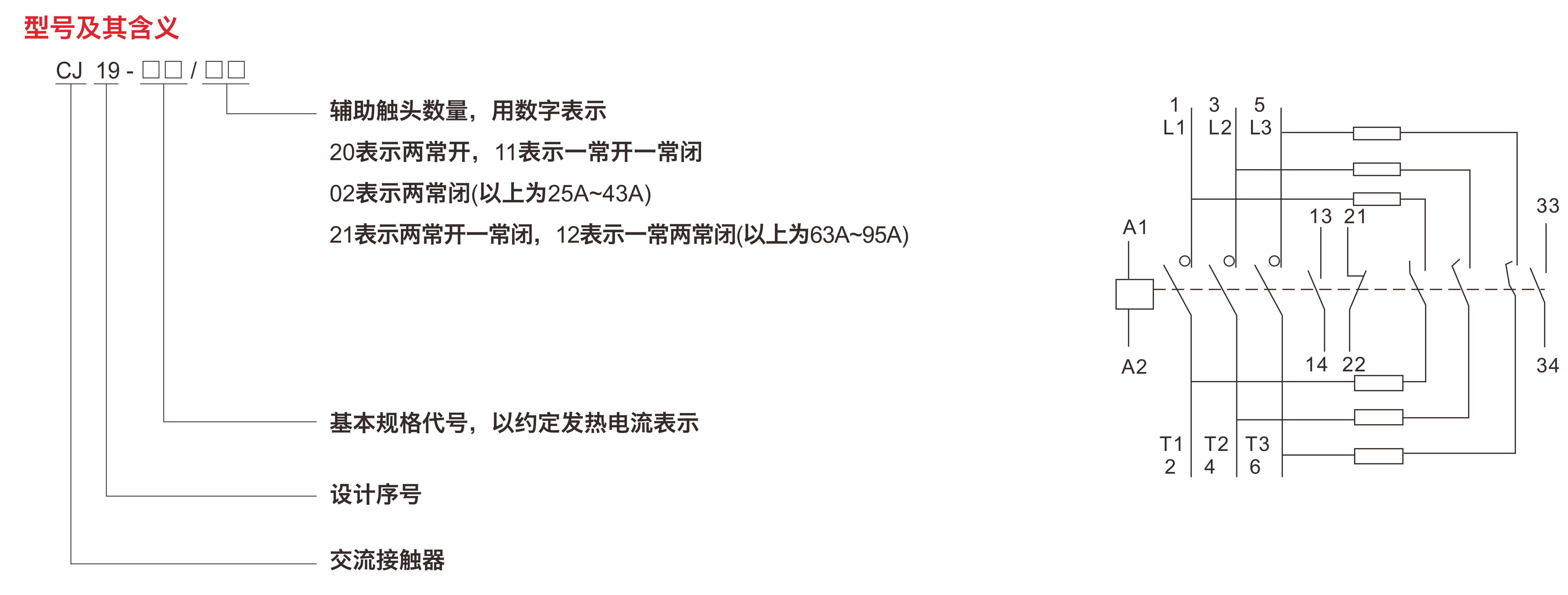 接觸器為直動式雙斷點結(jié)構(gòu),觸頭系統(tǒng)分上下兩層布置,上層有三對觸頭與限流電阻構(gòu)成抑制涌流裝置,當合閘時它先接通經(jīng)數(shù)毫秒之后工作觸頭接通,限流觸頭中永久磁塊在彈簧反作用下釋放,斷開限流電阻,使電容器正常工作,接觸器內(nèi)部電路連接圖(見圖)。?CJ19-25-43的接觸器有兩對輔助觸頭,CJ19-63-95的接觸器有三對輔助頭。接觸器接線端有絕緣罩覆蓋,安全可靠,線圈接線端帶有標出電壓數(shù)據(jù)可防止接錯。CJ19-25-43接觸器可用螺釘安裝,也可借底部的滑塊扣裝在35mm標準卡軌上。面罩上一個可拆卸的長方形小牌,用戶可用它打印項目代號等。CJ19-63-95可用35mm或75mm標準卡軌安裝。
