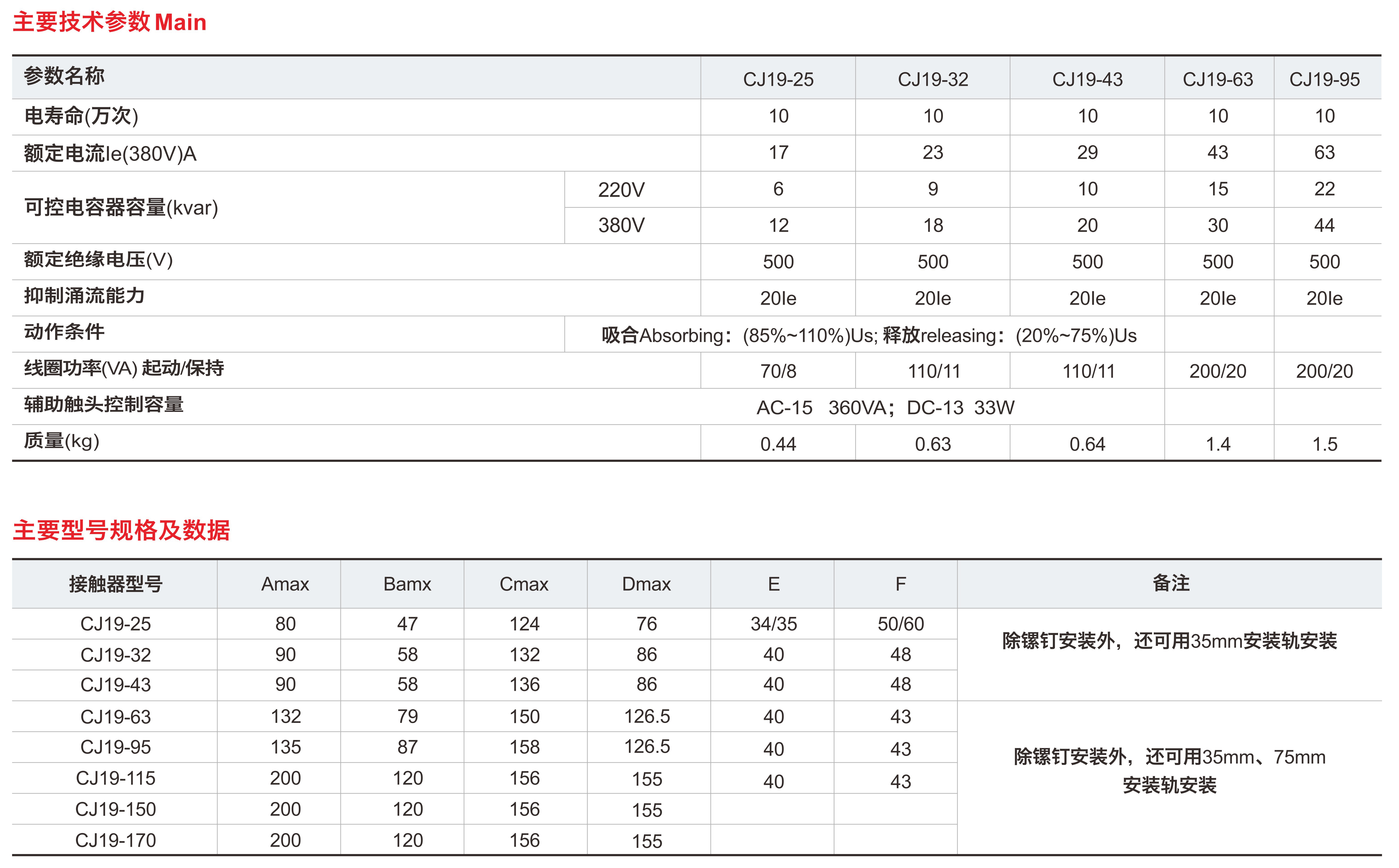 CJ19系列切換電容器接觸器(以下簡稱接觸器)主要用于交流50Hz或60Hz、額定工作電壓至380V的電力線路,供低壓無功功率補償設(shè)備投入或切除低壓并聯(lián)電容器之用。接觸器帶有抑制涌流裝置,能有效地減小合閘涌流對電容的沖擊和抑制開斷時的過電壓。