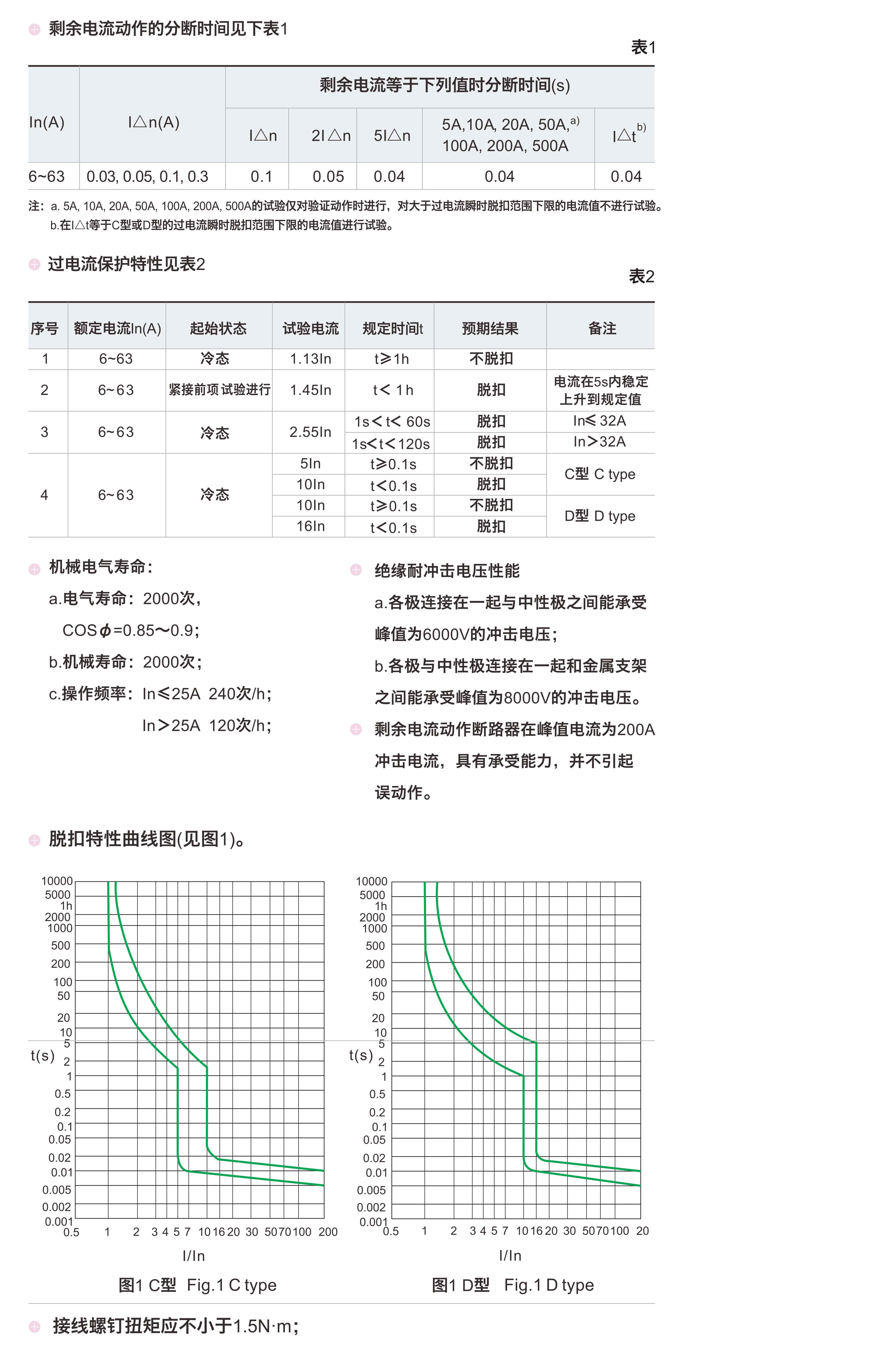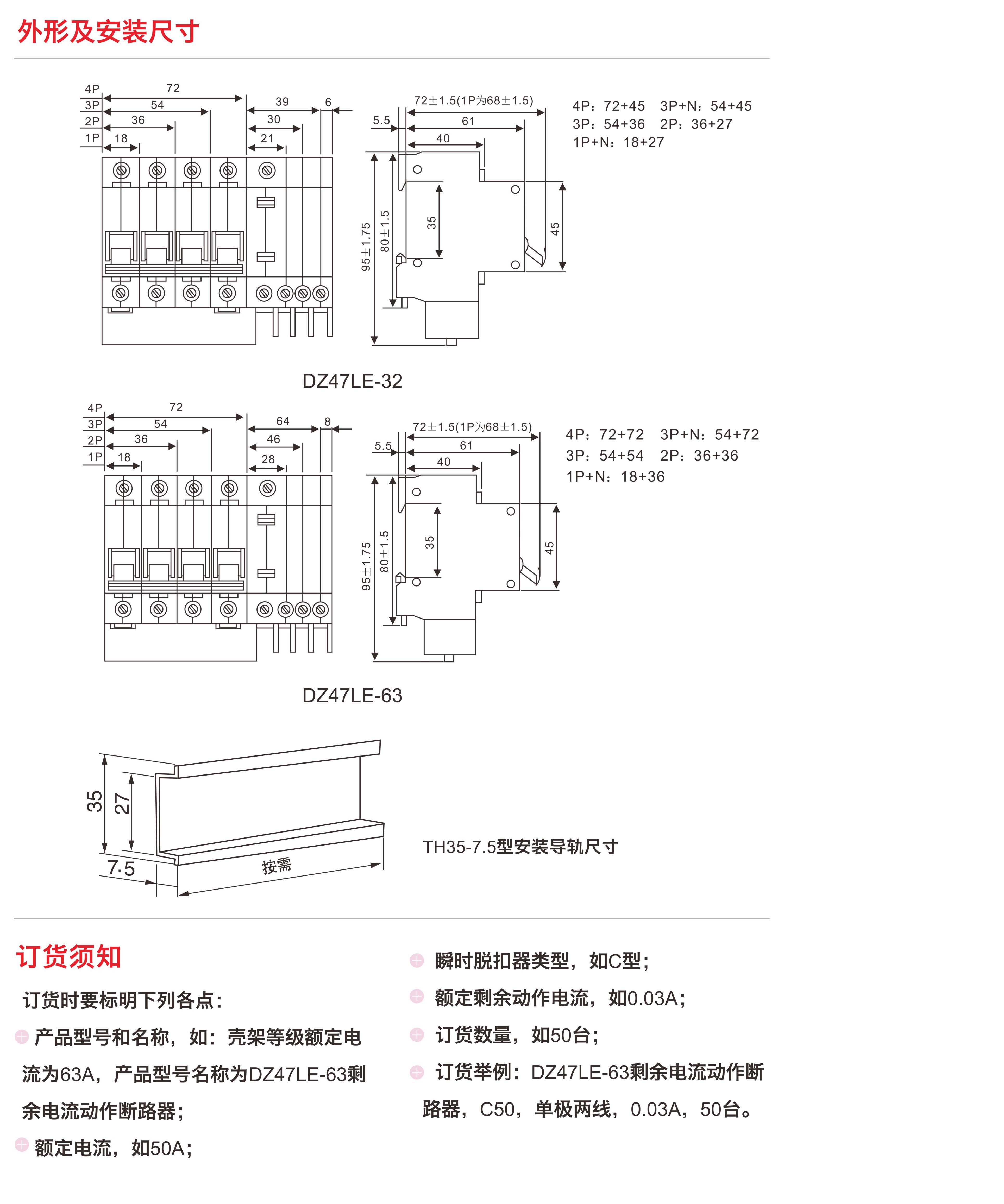 額定剩余動作電流I△n: 0.03A, 0.05A, 0.1A, 0.3A;