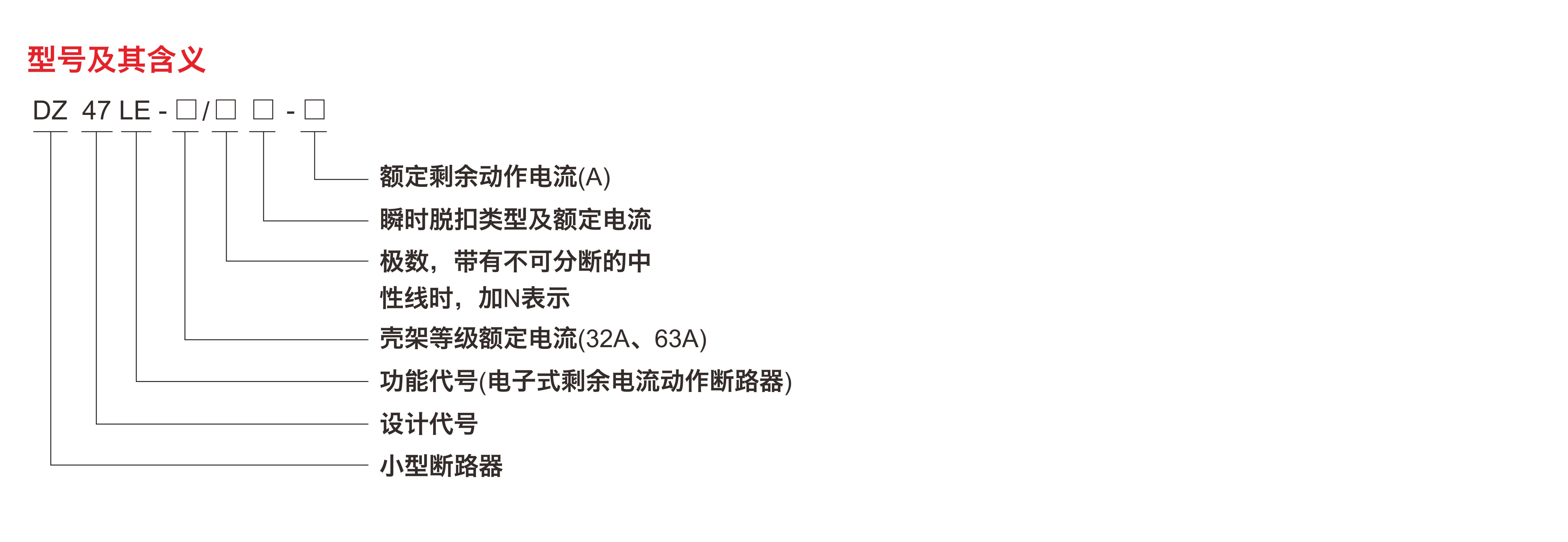 DZ47LE系列剩余電流動作斷路器適用于交流50Hz或60Hz,額定電壓單極兩線、兩極220V,三極、三極四線、四極380V,額定電流至63A的線路中,當(dāng)人身觸電或電網(wǎng)泄漏電流超過規(guī)定值時,剩余電流動作斷路器能在極短的時間內(nèi)迅速切斷故障電源,保護人身及用電設(shè)備的安全。