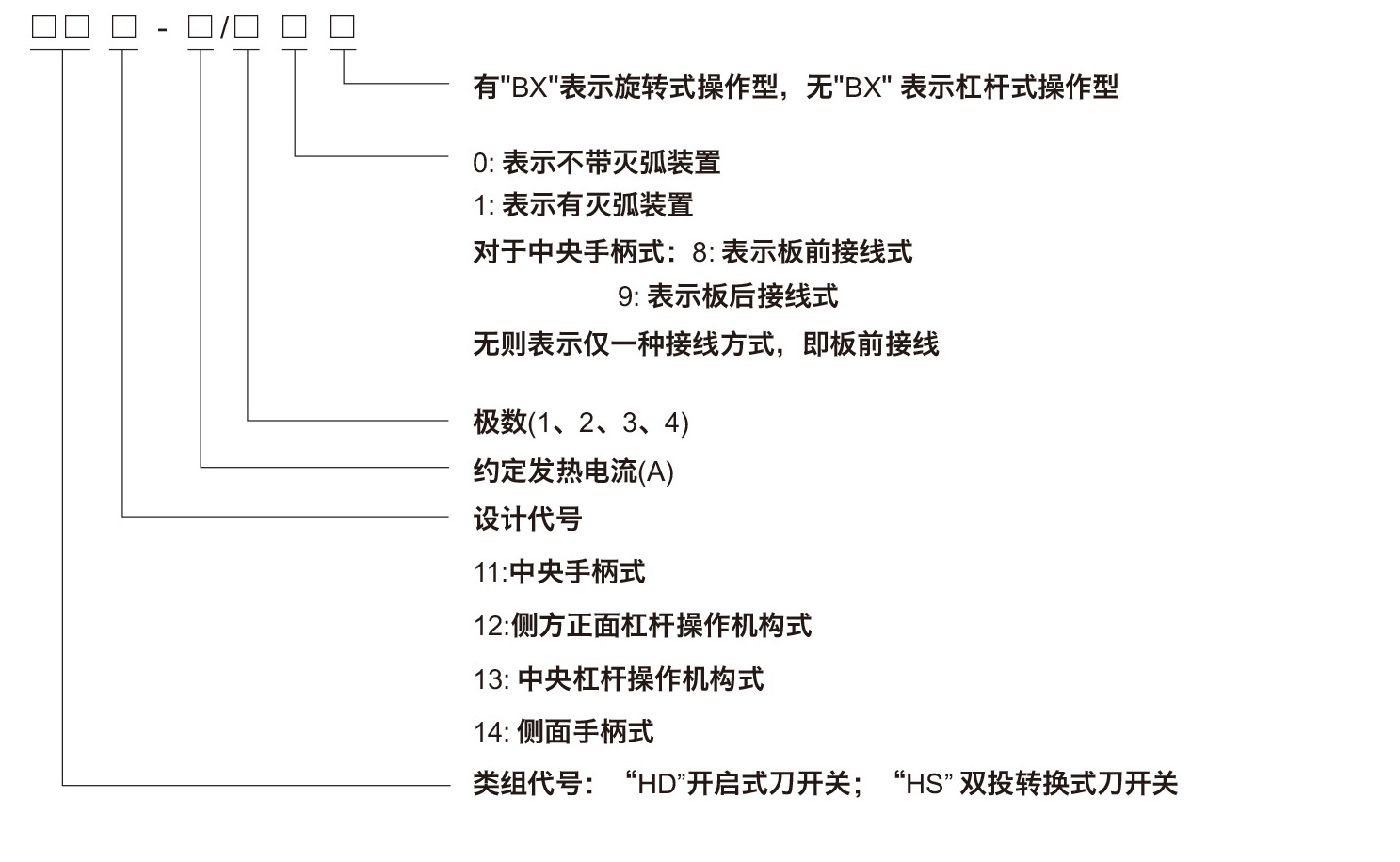 HD系列、HS系列開啟式刀開關(guān)及刀形轉(zhuǎn)換開關(guān)(以下簡稱開關(guān))適用于交流50Hz、額定電壓至380V、直流至220V,額定電流至3000A的成套配電裝置中,作為不頻繁地手動接通和分?jǐn)嘟弧?/span>