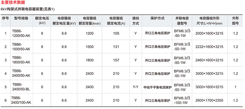 電容器組按不同容量規(guī)格,由一臺進線柜和一至數(shù)臺電容器柜組合而成。進線柜裝設放電線圈、接地開關氧化鋅避雷器。電容器柜內包括并聯(lián)電容器、單臺電容器保護用熔斷器。