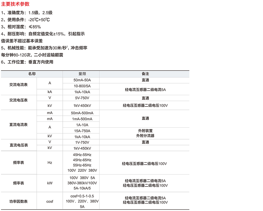 安裝式電工儀表是用途很廣的直接作用模擬指示電測儀表、適用于直流電路和工頻交流電路測量:電壓、電流、頻率、功率因素以及同步指示等電量參數(shù),安裝板表固有的優(yōu)點(diǎn)是可以顯示被測電量的變化趨勢,除單獨(dú)使用外,主要是為了各高、低電壓開關(guān)柜,電源柜、控制柜以及各種電控裝置、做儀表盤配套使用,產(chǎn)品各項指標(biāo)符合GB/T7676-1998國家標(biāo)準(zhǔn)技術(shù)要求。塑料或膠木外殼、大窗口、廣視角,造型簡潔明快、美觀大方。