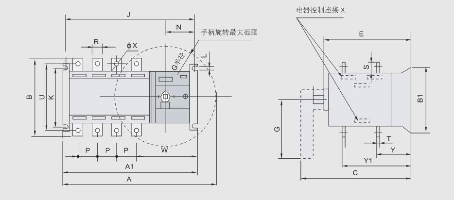 自動(dòng)轉(zhuǎn)換開(kāi)關(guān)(ATSE),是集開(kāi)關(guān)與邏輯控制于一體、真正實(shí)現(xiàn)機(jī)電一體化的自動(dòng)轉(zhuǎn)換開(kāi)關(guān),它適用于交流50Hz、額定電壓AC400V、約定發(fā)熱電流至1600A的工企業(yè)配電設(shè)備中,具有電壓檢測(cè)、強(qiáng)制置“0”、緊急手動(dòng)操作,廣泛應(yīng)用于供電系統(tǒng)的主用電源與備用電源的自動(dòng)轉(zhuǎn)換或兩臺(tái)負(fù)載設(shè)備的自動(dòng)轉(zhuǎn)換及安全隔離等。開(kāi)關(guān)由控制線(xiàn)路板發(fā)出各種邏輯命令來(lái)管理電機(jī),由電機(jī)帶動(dòng)開(kāi)關(guān)主體部分的操作機(jī)構(gòu),快速接通分?jǐn)嚯娐坊蜻M(jìn)行電路轉(zhuǎn)換,通過(guò)明顯可見(jiàn)狀態(tài)實(shí)現(xiàn)安全隔離。