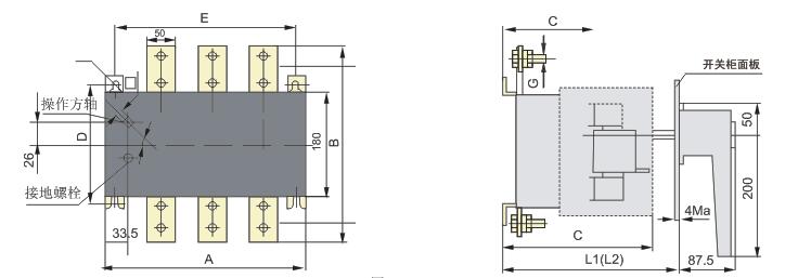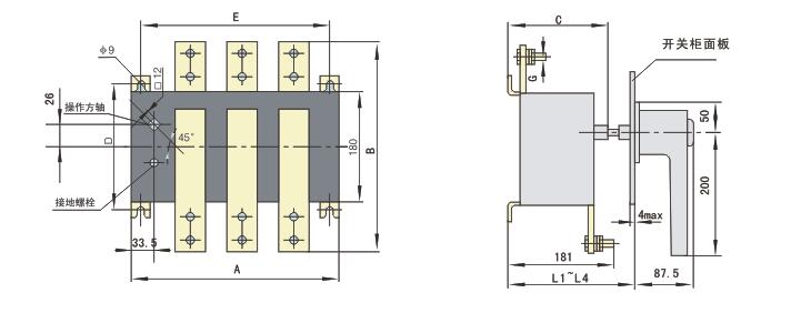 面板開孔是為了固定操作手柄底座之用,其尺寸與對應(yīng)開關(guān)規(guī)格關(guān)系